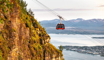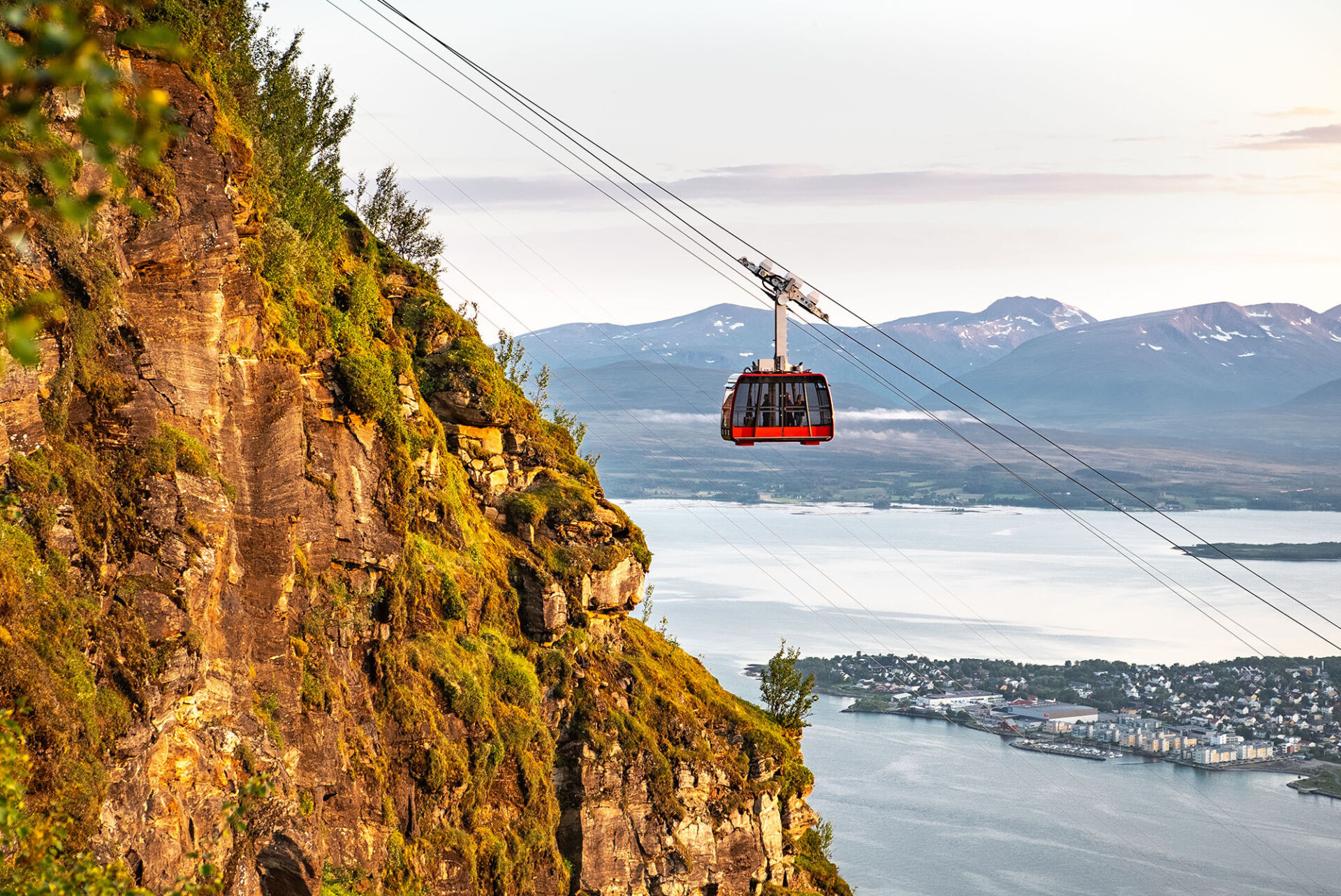 The Fjellheisen cable car brings you from Solliveien in Tromsdalen up to Storsteinen, 421 meters above sea level, in just four minutes.