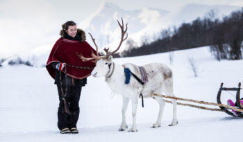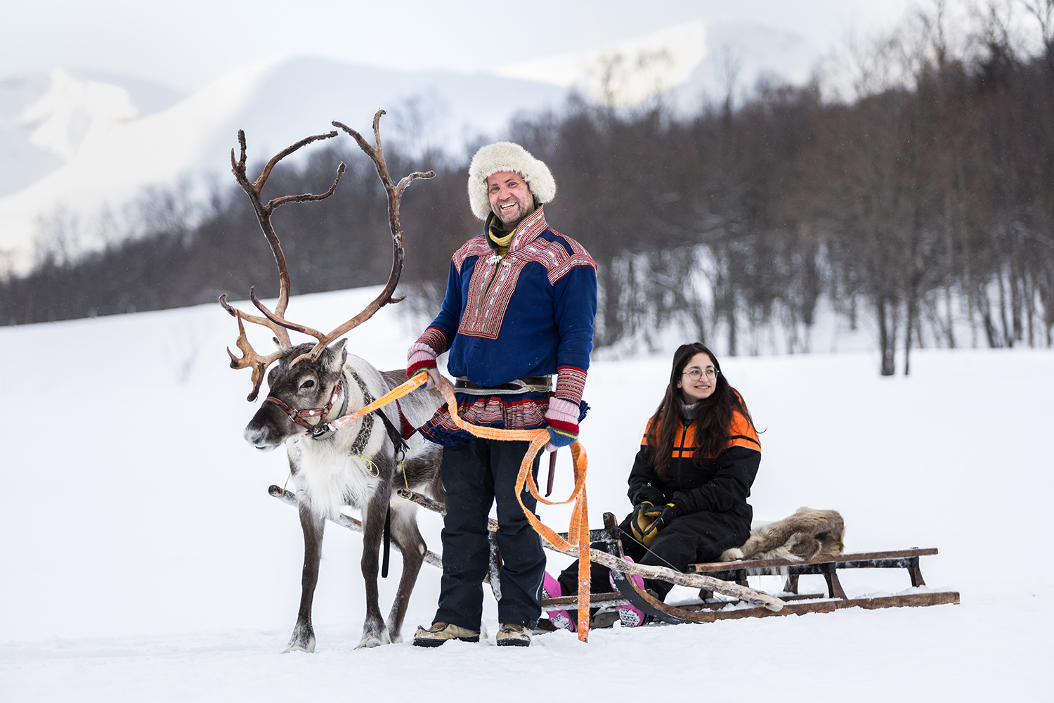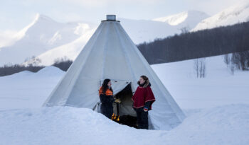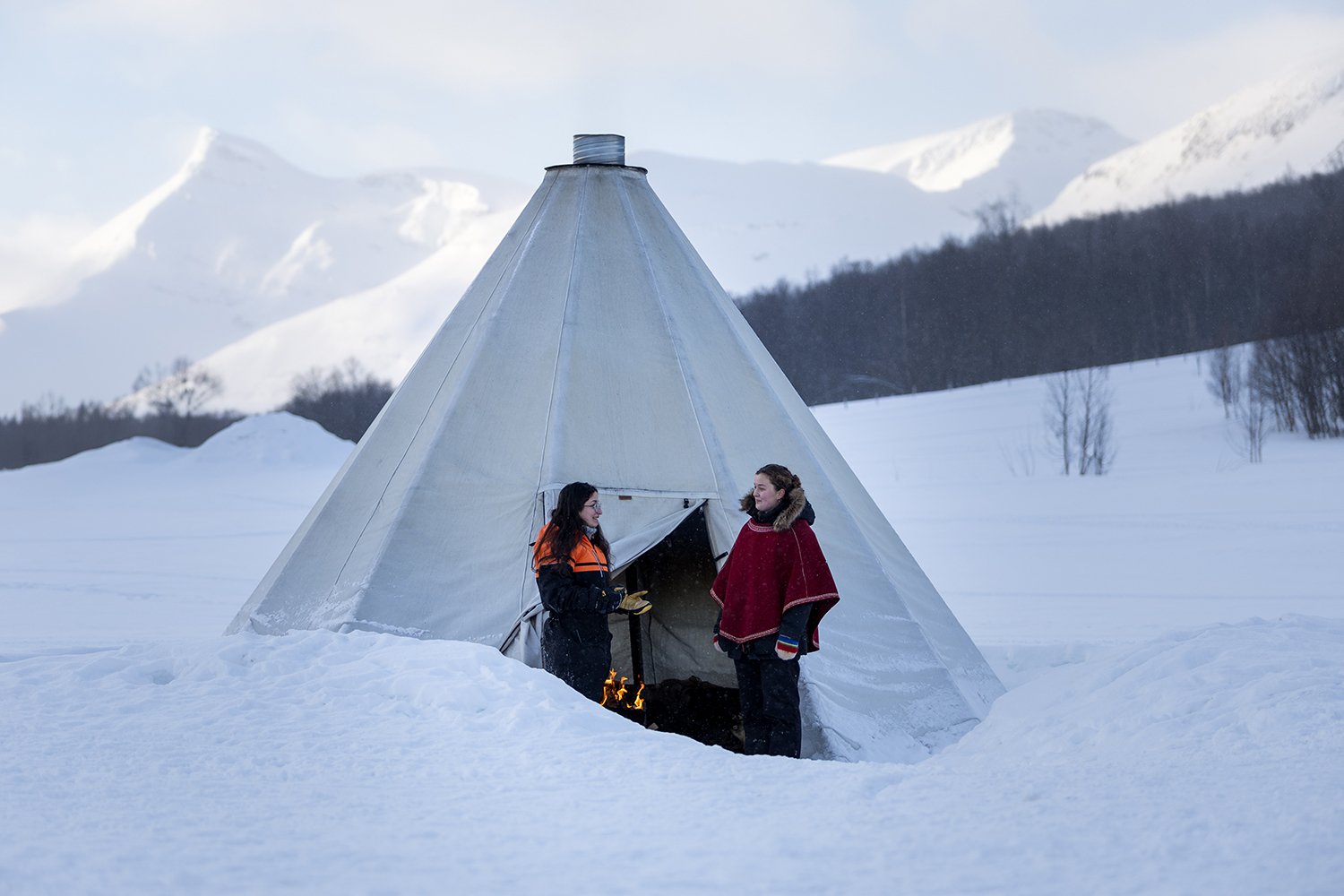 As our reindeer herd is some distance away from the dog yard, this activity will start with a short transfer by minibus. This cultural adventure includes a short reindeer sledding tour, storytelling about the fascinating Sami culture and feeding of the reindeer. There are about 5-6 reindeer in the camp. After your encounter with the reindeer, you will return to Camp Tamok, where a warm meal awaits in one of our traditional lavvus (indigenous Sámi tent). With food and drinks served, gathered around the open fire, you will get the chance to warm up, relax and exchange experiences and stories with your fellow adventurers.