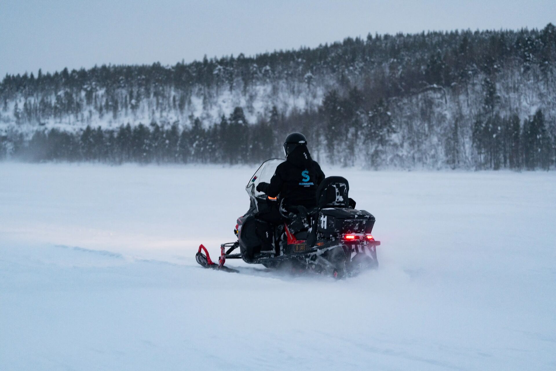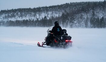 Your tour starts with either a pickup from your hotel in Kirkenes, or meeting up at the Snowhotel reception. Your guide will show you to the dressing room, where warm gear is provided. Before departure, you will receive a full safety briefing and a hands-on training sessionon how to drive a snowmobile, making sure everyone feels confident. Even if you have never driven a snowmobile before, you will be taught everything you need to know.