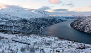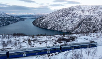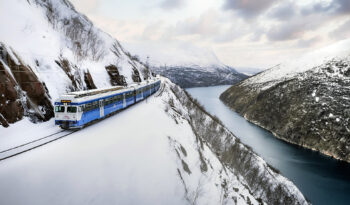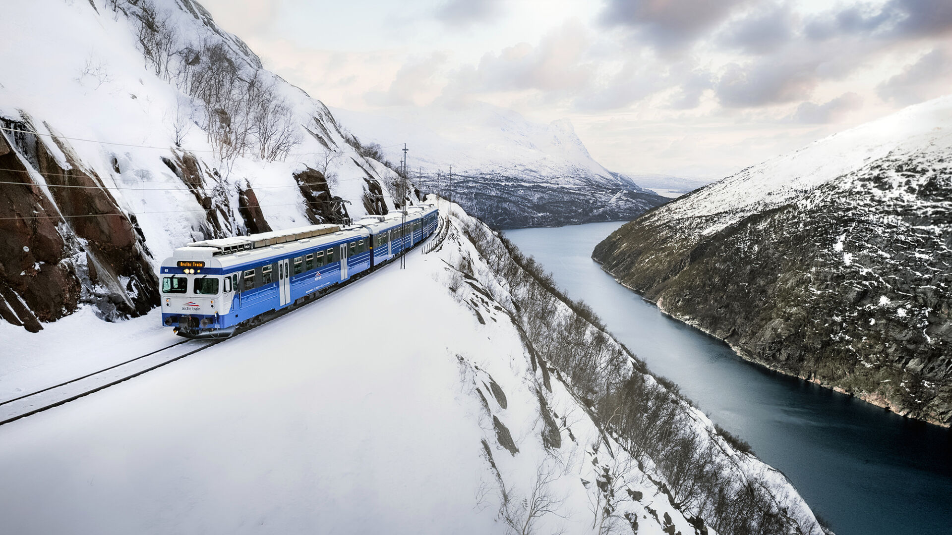Embark on an unforgettable train journey along Norway’s northernmost trainline, through breathtaking Arctic landscapes, with panoramic views of mountains and fjords.