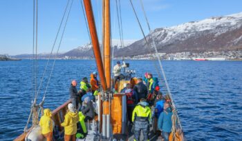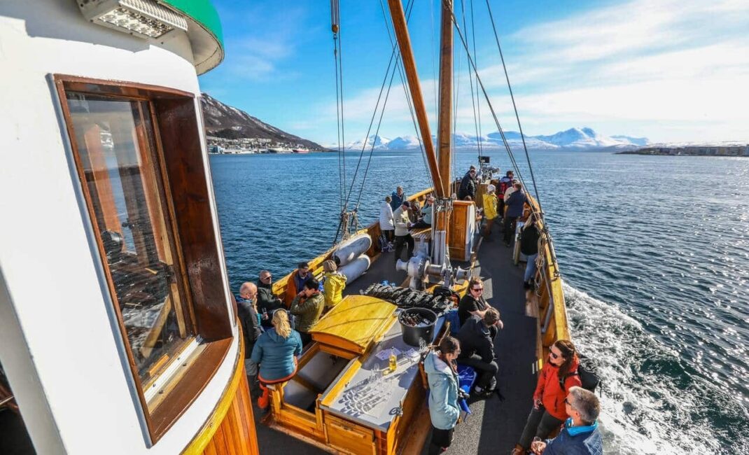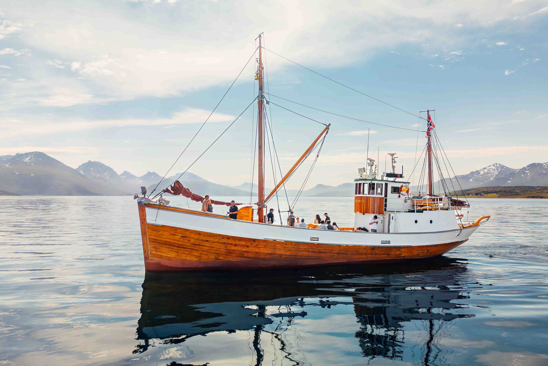 Gå om bord på Hermes II, en vakkert restaurert trebåt bygget i 1917. Mannskapet vårt vil ønske deg varmt velkommen og hjelpe deg med å bli komfortabel før vi forlater havnen i Tromsø.