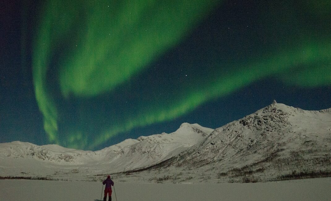 Together, we set off into the backcountry, gaining a bit of elevation to escape light pollution and enjoy views of the surrounding mountains and fjords. If the evening skies are kind to us, we’ll be in a perfect spot to capture that magical Northern Lights photo. Our guides are knowledgeable in photography and can offer tips and assistance to help you set up your camera for the best shot.