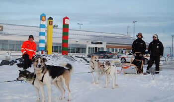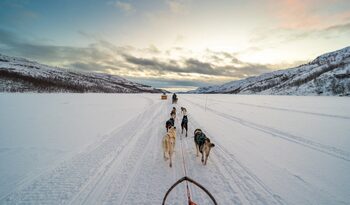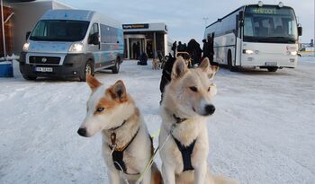 Ved landing på Kirkenes lufthavn møter du din profesjonelle hundekjører og et team med ivrige huskyer rett utenfor ankomstlobbyen, klare til å ta deg med på en eventyrlig reise mot overnattingen din på Snow Resort!